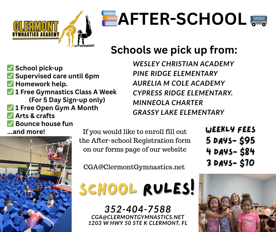 - Additional one-hour gymnastics or tumbling class included a week if you are full time
